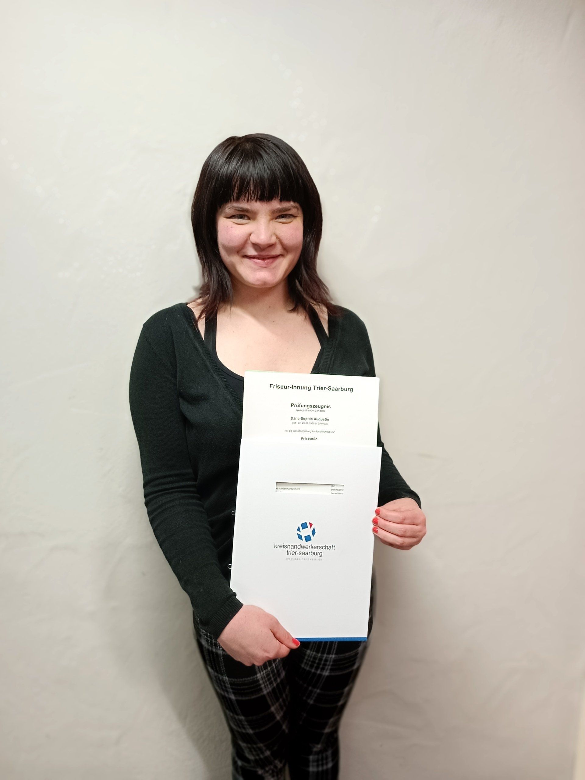 Unsere Auszubildende Dana hat ihre Ausbildung erfolgreich abgeschlossen! In Zeiten der Pandemie hat sie ihre verkürzte Lehrzeit erfolgreich mit der bestandenen Gesellenprüfung beendet. Jetzt macht sich Dana auf einen neuen Weg und zwar zur Maskenbildner-Ausbildung! Wir wünschen dir für deine berufliche und private Zukunft alles Gute! Dein Team von Friseur Krüger Wehlen