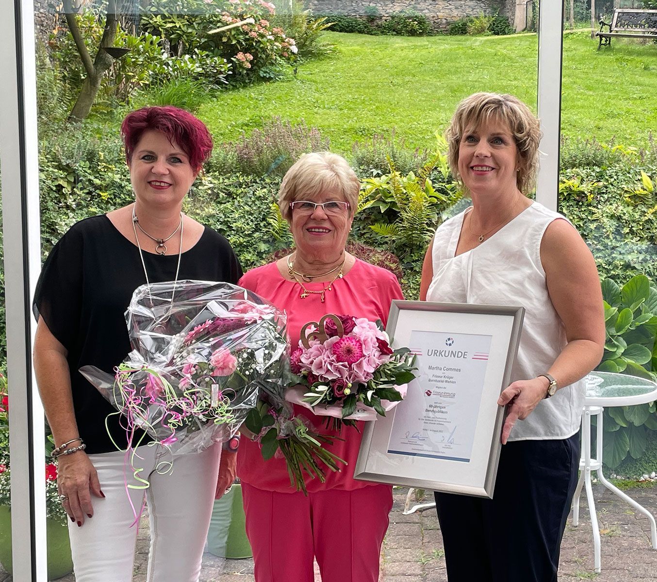 BERNKASTEL-WEHLEN. Ein außergewöhnliches Jubiläum konnte im August bei Friseur Krüger in Bernkastel-Wehlen gefeiert werden. Martha Commes, Seniorchefin des Salons in dritter Generation beging ihr 60-jähriges Berufsjubiläum. Ihre Töchter Anja Commes-Kieren und Heike Urban hatten ihre Mutter überrascht und für einen unvergesslichen Nachmittag gesorgt. „Unsere Mutter ist noch immer mit so viel Engagement im Geschäft für Ihre Kunden, das ist eine wahre Freude. Und sie genießt es ebenso“, resümieren die beiden Töchter. Eine weitere Leidenschaft von Martha Commes ist das Mini Friseur Museum, welches der Salon, der seit 1924 in der Hauptstraße in Wehlen zu Hause ist, beheimatet. Martha Commes liebt es, die Exponate der vergangenen einhundert Jahre interessierten Besuchern zu präsentieren. Eine Führung erhielt auch Christian Weirich, stellvertretender Geschäftsführer der Friseur-Innung Bernkastel-Wittlich und der Kreishandwerkerschaft MEHR, als er die Jubiläumsurkunde überreichte. „Beindruckend und wirklich einen Besuch wert“, sein Fazit.